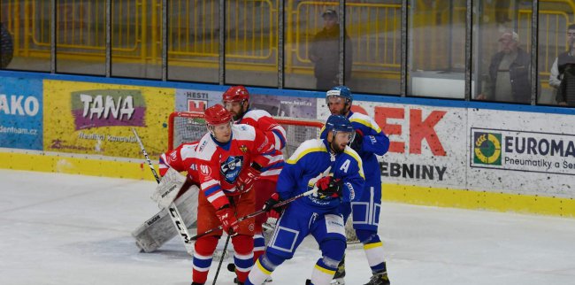 Petrů - Kellner, Kostka, Mlateček, Plíhal, Souček, Dittrich - Jušta, Menyhárt, Hanousek - Netušil, Zahradník, Sajdl - Šeda, Drašnar J., JavůrekV úvodu utkání jsme se ujali vedení, ale poté měl více ze hry domácí tým. Postupně jsme hru vyrovnali a vytvářeli si i šance, ty zůstaly ale bez využití. Domácí využili naše zaváhání po buly ke srovnání stavu, do kabin se šlo za stavu 1:1. Na začátku druhé třetiny jsme promrhali několik po sobě jdoucích přesilovek, to domácí si počínali lépe a po dvou proměněných přesilovkách a jedné potrestané hrubce při rozehrávce získali tříbrankový rozdíl. Naše šance zůstaly opět nevyužity. V závěrečné třetině padlo na každé straně po jedné brance, domácí tak zaslouženě zvítězili.