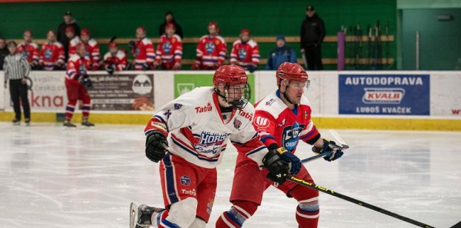 Rolinek - Junek, Mlateček,, Lenoch, Fink, Souček, Dostál - Wolf, Zahradník, Jílek - Bartoň, Matouš, Drašnar J. - Jušta, Drašnar T., Beránek - MenyhártUtkání na hlineckém ledě jsme zahájili dobře, když jsme využili první přesilovou hru v utkání. Tečovanou střelu od modré vyrazil Sláma jen před sebe a Wolf si s dorážkou poradil. Domácím se povedlo srovnat stav v 5. minutě, po naší ztrátě kotouče ve středním pásmu využili rychlý výpad a přečíslení 2 na 1, zakončující Karásek dostal kotouč nad Rolinkovy betony. V dalším průběhu této třetiny jsme sledovali vcelku vyrovnanou partii, kdy si oba brankáři připsali několik dobrých zákroků. V 15. minutě nás dostali domácí pod tlak ve vlastním pásmu, ale obrana odolala a jakmile jsme prostřídali, tak jsme se dostali do rychlého protiútoku a přečíslení 2 na 1, Jílkovu nabídku na Wolfa si domácí obránce srazil za brankovou čáru.