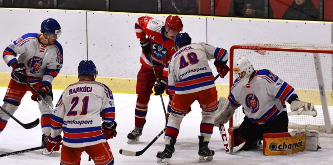 Šimon - Veselý, Kostka, Pitsch, Mlateček, Dittrich - Drašnar J., Drašnar T., Jušta - Menyhárt, Zahradník, Sajdl - Netušil, Matouš, JavůrekPrvní polovinu soutěže jsme zakončili dalším zápasem na hřišti soupeře z Pardubického kraje. Domácí se ujali vedení již po 26-ti vteřinách hry, zpoza branky nachytal brankáře Půlpán. Ve 3. minutě střílel obránce mimo tři tyče, kotouč se od zadního mantinelu odrazil příhodně na hůl volného Jakubce na brankovišti. Za další minutu domácí vedli již 3:0, z kruhu střílel zpoza obránce Dostál. Následoval time-out a důrazná domluva na střídačce. V 6. minutě jsme vyhráli v útočné třetině buly a Kostka od modré prostřelil vše před sebou a snížil. Za další minutu jsme vybojovali kotouč v útočném pásmu a Sajdlovu nabídku využil na brankovišti volný Zahradník. V 10. minutě domácí proměnili přesilovou hru, střela z mezikruží vypadla Šimonovi před brankovou čáru a k dorážce se dostal nepokrytý Škvor. O pátou domácí branku se postaral od modré střílející domácí obránce Zahradník. Ve 14. minutě se opět trefil Zahradník, tentokráte ten třebechovický, když zůstal volný před brankou a s domácím brankářem si také poradil. Ihned po rozehrání ve středovém kruhu se domácí dostali do útočného pásma a střela Vomočila z vrcholku kruhu zpoza hráče skončila až v síti.